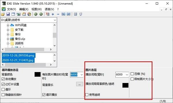 4、在图片选谢谢爱,可以独一播放间隔、播放间隔背景颜色、压缩等参数进行调整。