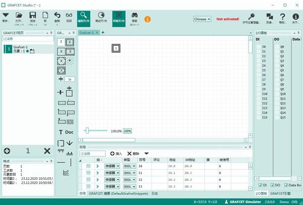 GrafCet Studio P版是为用户打造的一款实用图表设计工具,目前支持西门子S7-1200、西门子S7-1500、西门子S7-300/400、基于CODESYS V3的控制器(WAGO,施耐德电气,EATON等)以及其他支持Python3的设备等等,应用范围非常的广。你可以使用它根据DIN EN 60848创建/设计GRAFCET流程图并对其进行仿真,并可以将创建/设计的GRAFCET流程图通过触摸按钮转移到设备上,值得一提的是,Grafcet Studio的用户界面完全面向矢量。您可以随意缩放用户界面和Grafcet图表而不会降低质量(放大和缩小)。这样即使在高分辨率4K屏幕上也可以确保高质量的显示。同时您可以使用I/O面板模拟创建的Grafcet。并在I/O面板上设置输入并监视输出。对于较大的Grafcet图表,应使用虚拟机/系统执行仿真,适合所有专业使用Grafcet图表的人士使用。