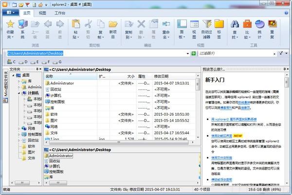 Xplorer2最新版是一款作便捷的文件整理软件,Xplorer2最新版具有两个文件管理窗口,Xplorer2最新版可布局呈垂直分割和横行分割,并且软件具有一键新建文件夹、分割文件、合并文件等功能,而且用户不用压缩软件就能查看zip等压缩文件。软件拥有强大的文件选择过滤和搜索文本功能。
