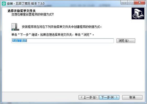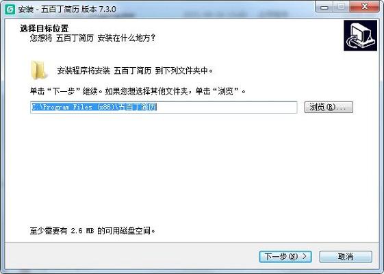 1、在本站下载五百丁简历版软件包,解压,运行“exe.文件”进入安装向导,点击“浏览”选择安装位置,默认c盘,点击下一步