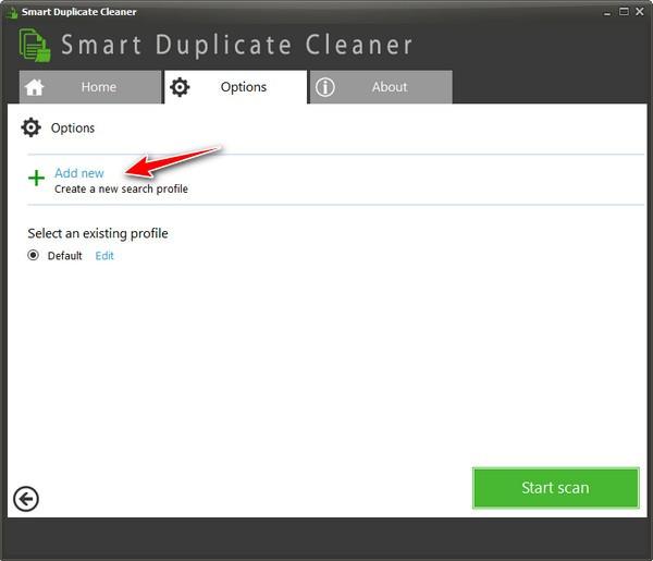 2、运行软件,进行相关参数设置,点击【options】设置自己的搜索方案,点击【add new】设置文件类型、匹配方式、删除方式;