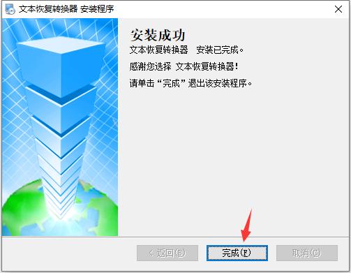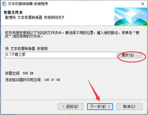 2、软件默认安装位置为“C:/Pgram Files (x86)/文本恢复转换器”,点击“更改”可以自主选择其它位置安装