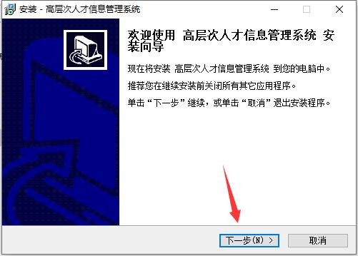 1、在本站下载高层次人才管理系统版软件包,解压缩后双击“高层次人才管理系统.exe”程序进入欢迎安装界面,点击“下一步”
