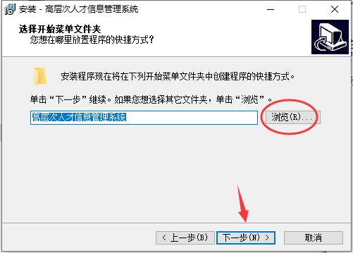 3、进入开始菜单文件夹位置选择界面,点击“浏览”可以自主选择,点击“下一步”继续