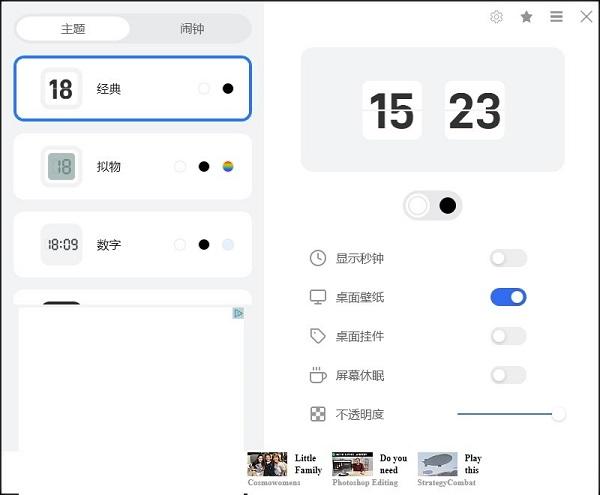 提供了经典、拟物、数字等多种不同的时钟主题,您可以根据喜好应用。
