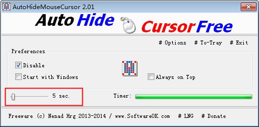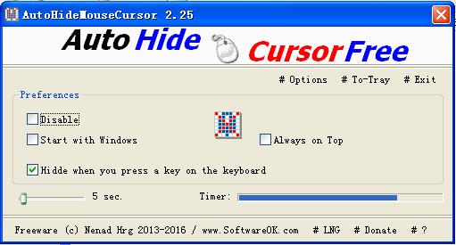 AutoHideMouseCursor最新版是一个十分好用的键盘鼠标光标隐藏软件,AutoHideMouseCursor最新版能够帮你自动隐藏鼠标光标,用户只需要设定一个固定时间,当鼠标在设定的时间之内没有接受到移动或点击的指令,那么鼠标光标就会自动消失。