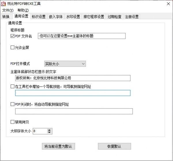 可自定义PDF EXE的版权。