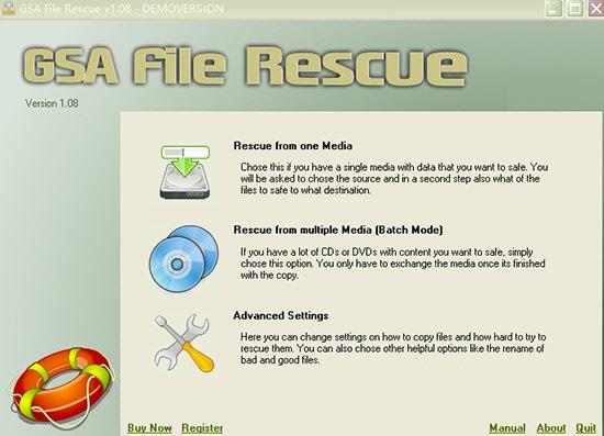GSA File Rescue版支持从不可读的DVD恢复数据。