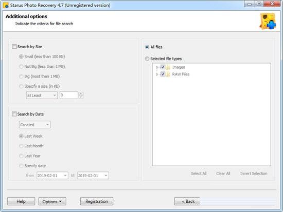 Starus照片恢复功能有一个完全引导的、逐步删除的照片恢复向导。该向导指导用户完成整个过程,帮助用户选择正确的模式,并通过几个简单的步骤配置所有设置。