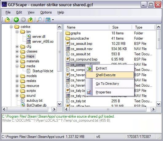 如果Steam是打开的,它改变了一个GCF文件的内容,而它被映,GCFScape将变得不稳定,很可能崩溃。
