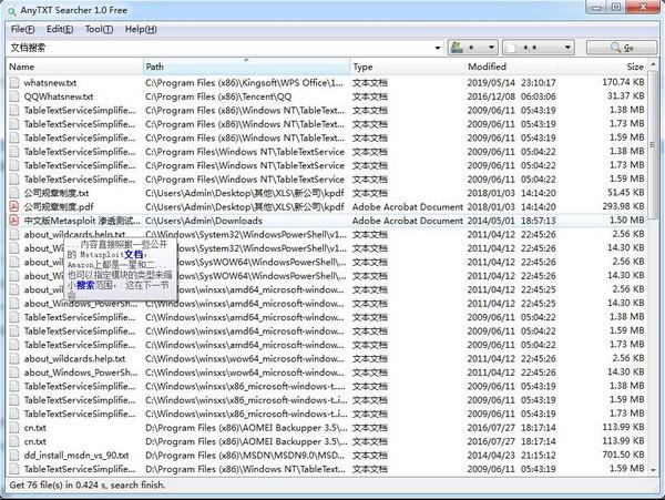 AnyTXT Searcher内置了强大的文档解析引擎,可以在不安装任何其他软件的情况下提取常用文档的文本,并结合内置的高速索引系统来存储文本的元数据。你可以使用Anytxt快速查找计算机上存在的任何文本。它适用于Windows系统所有作系统。