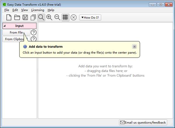 启动Easy Data Tranorm。如果出现 “免费试用 “窗口,请单击 “继续免费试用”。如果出现入门窗口,请单击 “我曾经使用过它!”。(否则您将返回到此页面)。您现在应该看到主窗口。