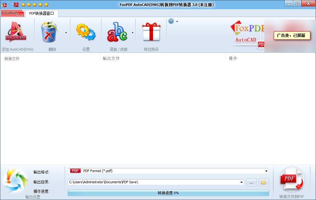 步骤1:首先需要你运行打开FoxPDF AutoCAD转Pdf转换器。