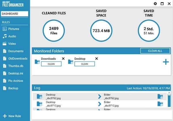 使用文件管理器,您还可以整理和分类外部驱动器,如USB硬盘驱动器。只需将其插入,设置规则,数字真空吸尘器即可开始使用
