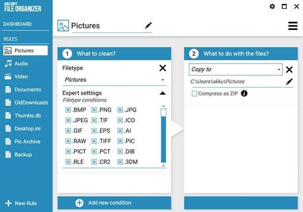 使用此智能工具,您不仅可以清理文件,还可以执行作。选择移动,复制,删除或压缩数据(zip)。