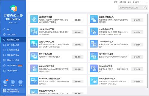 2、格式转换套件:包括全能PDF转换器 (转图片,转WORD,转HTML),Office转换器(WORD/PPT/EXCEL转图片及PDF),全能图片转换工具,全能音频转换工具,全能转换工具, 全部支持批量转换。