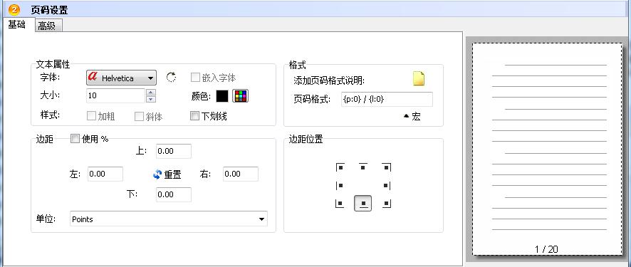 边距:自由调整页码在PDF文档页面的位置,在“上”“下”“左”“右”四个选项中输入数值即可,也可点击“重置”按钮重新设置数值。