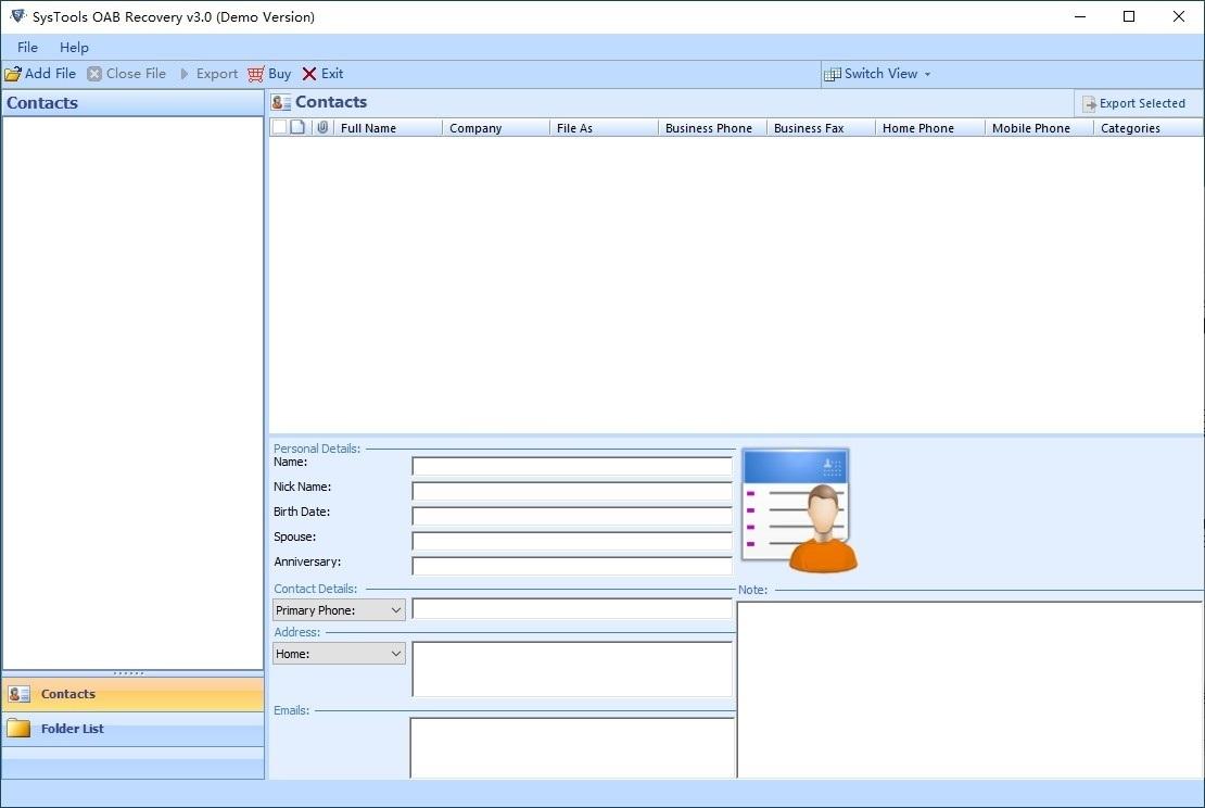 SysTools OAB Recovery版是一款使用起来非常安全可的OAB数据恢复软件,SysTools OAB Recovery版旨在帮助您OAB文件中恢复联系人,并导出为pst、pdf、csv、vCard等常见格式,SysTools OAB Recovery方便您将恢复的联系人导出到各类电子邮件客户端或者其他程序。