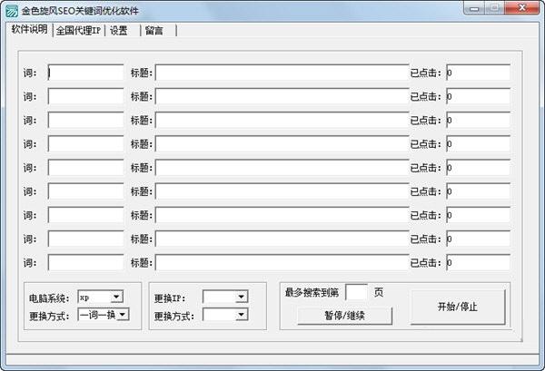 金色旋风SEO关键词优化软件是一款方便易用的SEO关键词优化软件。该软件完全采用了自动点击,支持百度、谷歌、360搜索、搜狗、搜搜、淘宝、天猫,而且流量来源分布广泛而合理,几乎每一个ip都是真实可见的,有效提高关键字的排名。