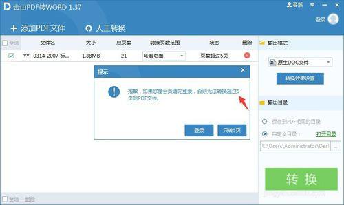 2、“转换页数范围”功能只有VIP会员才能使用,意味着还是只能转换前面5页。