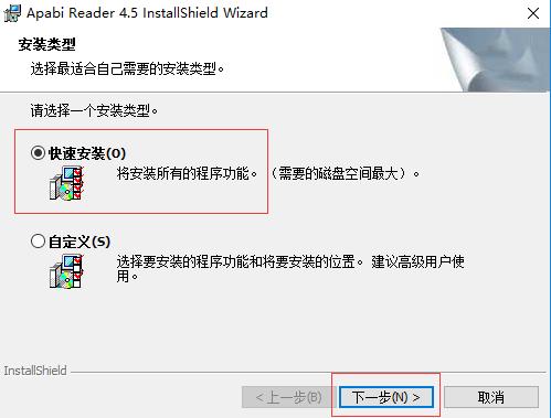 二、选择安装类型后,点击下一步。