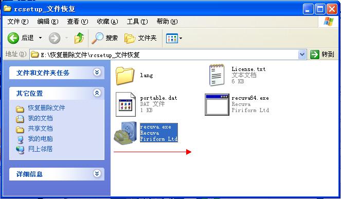 3、将工具解压后,找到recuva.exe,双击执行(直接在压缩包中直接运行当然也可以)