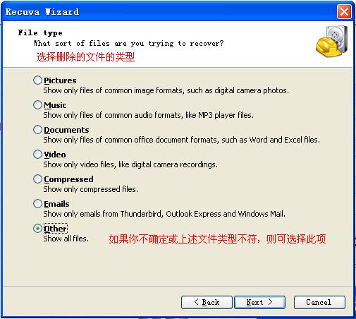 如果你明确自己删除的文件是哪种类型,可以直接选择哪种类型;如果不明确哪种类型,那么可以直接选择“Other”