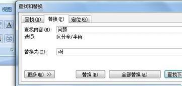 输入好后点击全部替换,如图所示,可以看到【问题】全部替换成【OK】了。