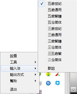 1、打开“设置选项”,进入“输入法选单”(如“五仓頡世纪”,见上图)