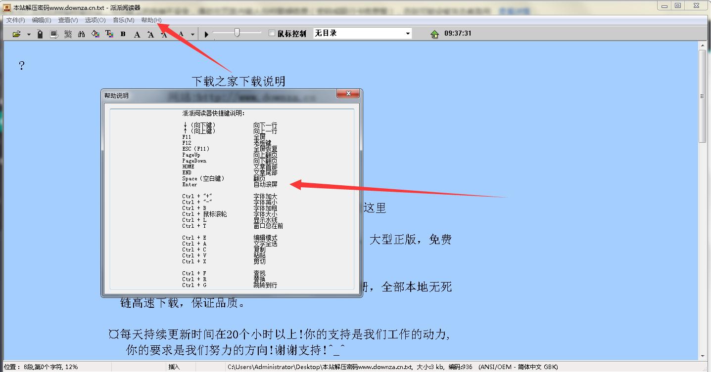 派派小说阅读器是款功能中规中矩的电子书阅读器,它具有大部分电子书阅读器都有的功能,例如调整字体大小,修改背景和字体颜色,播放音乐,支持简繁体转换等。派派小说阅读器的亮点是它无级变速的自动屏功能,派派小说阅读器支持打开多种格式的文本文档,支持的格式包括txt,umd,jar,pdb,rtf,zip,rar,doc以及epub。