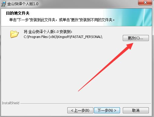 3、接着就可以看到默认安装位置在C盘,我们点击“更改”来更改安装位置