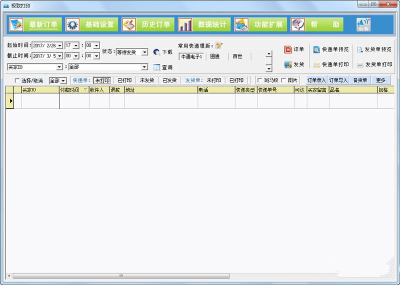 1、可以直接批量下载淘宝订单或批量导入其它平台订单,极致打印免费版支持目前常见的几十种普通面单和十五家电子面单批量打印,可以按付款时间或品名规格排序。