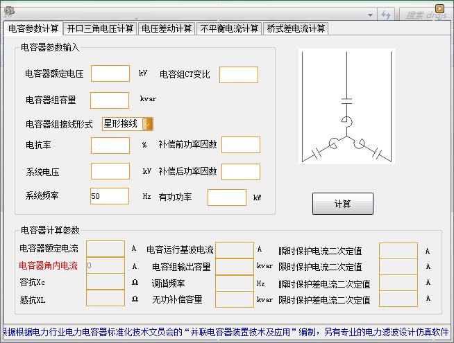 电容器相关计算软件正式版是一款相当出色的小巧型电容计算工具,电容器相关计算软件正式版功能全面,提供了并联电容器相关的多种常用计算功能。电容器相关计算软件最新版可以帮助用户进行电容参数计算,开口三角垫压计算,电压差动计算,不平衡电流计算,桥式差电流计算等。