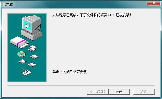 丁丁文件备份精灵正式版安装即快,安装完成后,点击关闭,退出安装向导