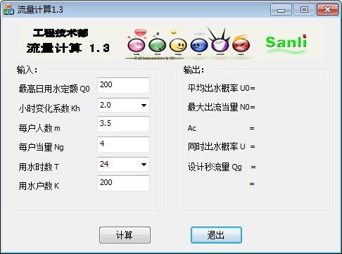 流量计算软件版能够对小区或者村庄内供水以及出水量进行计算的工具,利用该工具能够笼统的计算出某个地区某个一个时间段的出水概率以及出水量,是一款用于统计的软件。