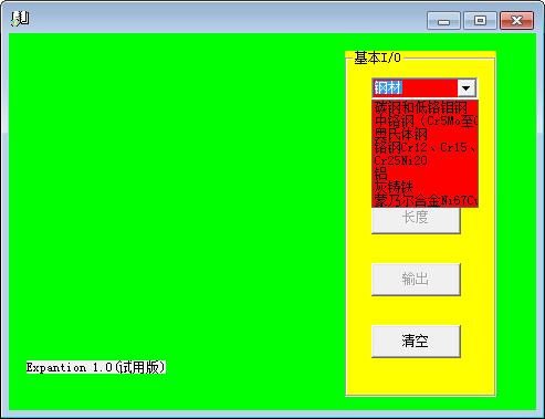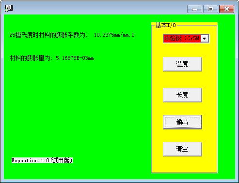 expantion最新版是一款实用的材料膨胀量计算软件,expantion最新版是一款能够帮助用户计算各种材料的膨胀程度的软件,expantion最新版可以让用户通过对温度、长度的输入得到材料的膨胀量,软件支持对铝进行计算、支持对灰铸铁计算、支持对碳钢和低铬钢计算。它内置了多种材料的计算公式。