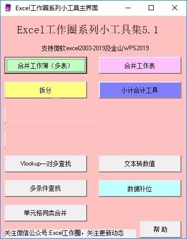 7.Excel工作圈系列小工具电脑版支持小计合计工具、批量提取文件名称、Excel密码管理