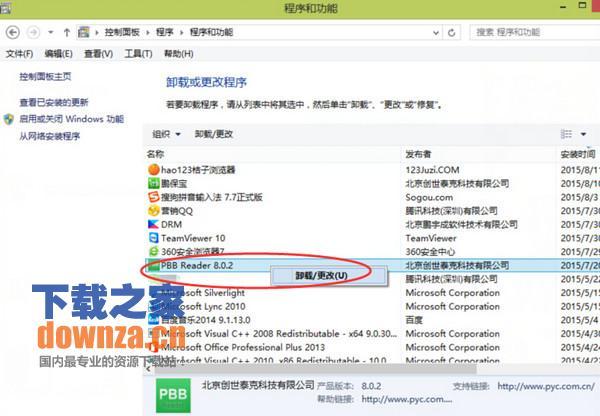 PS:大家在卸载PBB Reader时,请不要直接删除其桌面快捷方式,而是去控制面板,在卸载程序中找到PBB Reader进行卸载。如图: