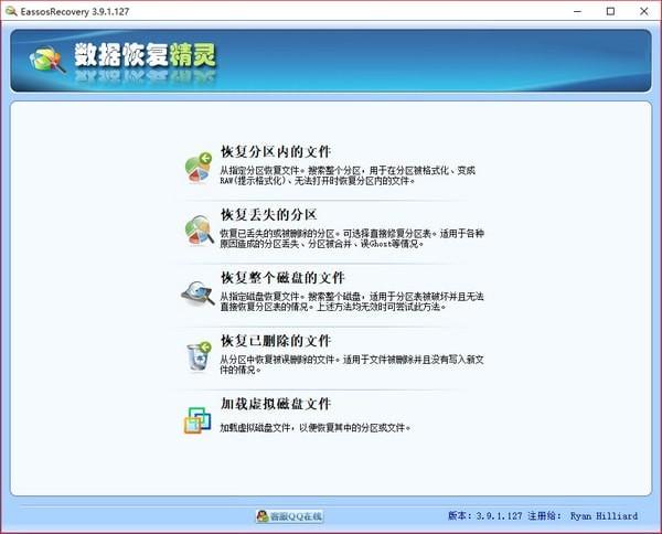 EassosRecovery版是目前最优秀的免费数据恢复软件,注意,是免费,完全免费!EassosRecovery是一款基于DiskGenius内核技术,免费向广大用户开发的数据恢复软件,该软件在数据恢复功能上,除去一些普通用户很少接触的一些方面,比如RAID恢复。论价值,数据恢复精灵与Diskgenius是完全相当的。数据恢复精灵的作界面设计成向导式,只需要根据向导,简单用鼠标点击”下一步”。就可以完成数据恢复工作。整个过程,轻松、方便、快捷。