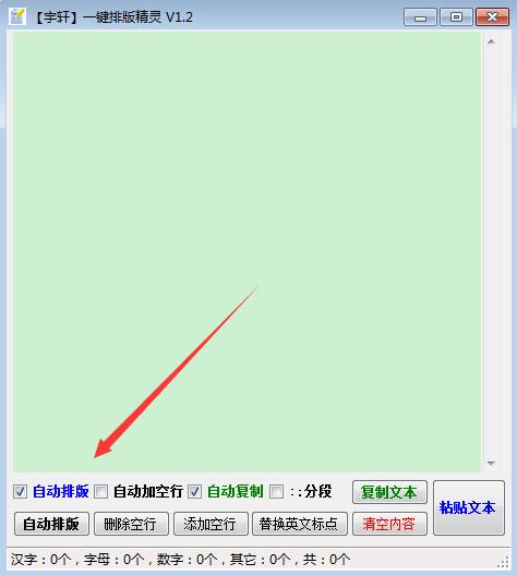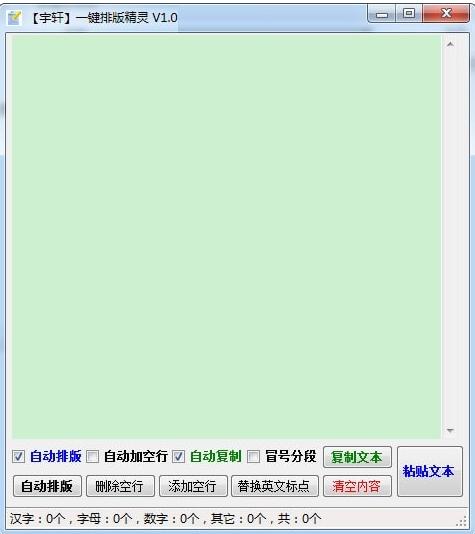 宇轩一键排版精灵版真正实现一键排版,你只需要点击一个按钮。 从剪切板获取文本==>自动排版==>排版后的文本复制到剪切板