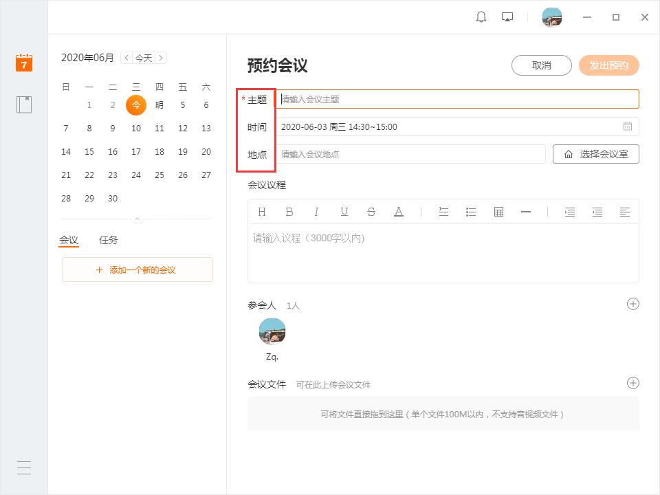 – 预约会议时可以将会议议程和会议文件同步传输给参会人,实现会议的及时同步;