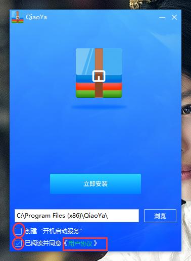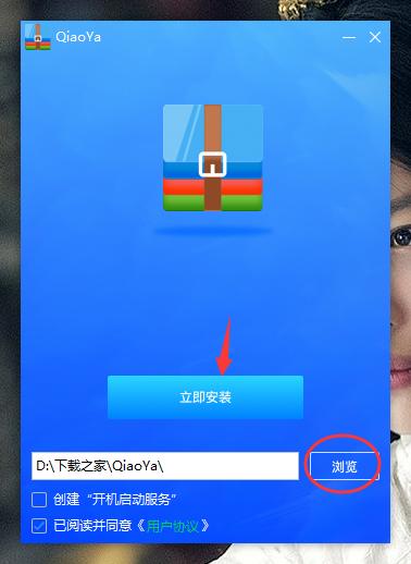3、软件默认安装位置为“C:/Pgram Files (x86)/QiaoYa/”小编建议点击浏览选择C盘以外的磁盘安装,选择好安装位置后点击“立即安装”即可
