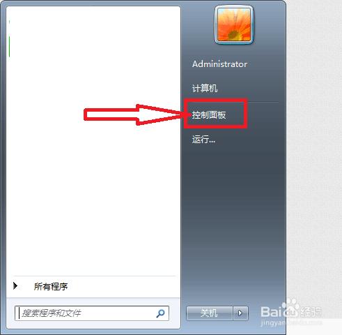 第一步,点击计算机左下角的开始,找到搜索按钮并点击,在弹出菜单中搜索“控制面板”(如果是win7win8则点击计算机左下角的开始,弹出开始的下拉子菜单,在子菜单中找到“控制面板”)