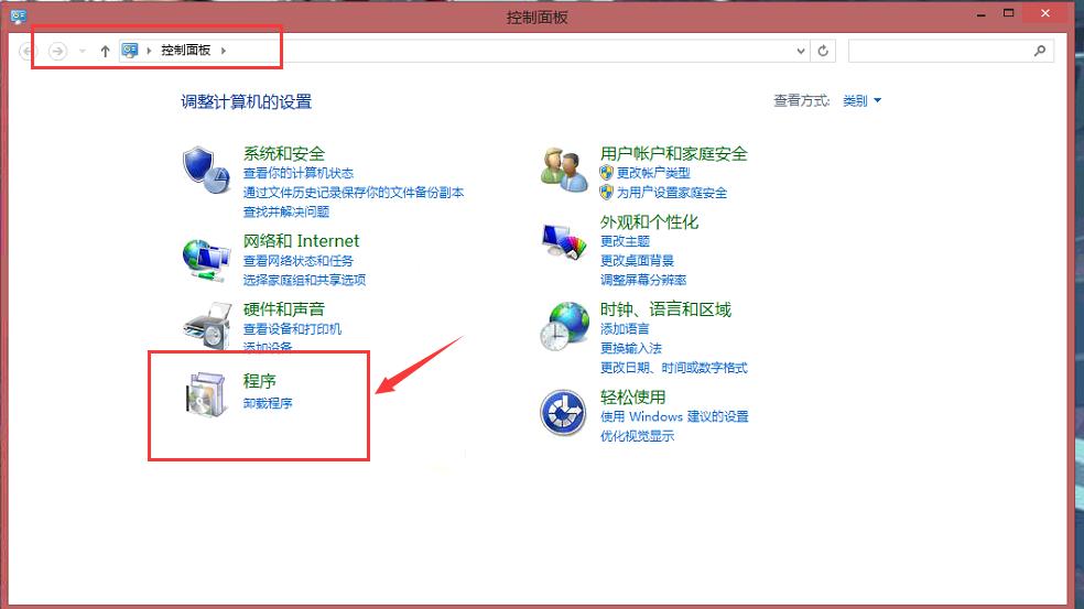 第二步,打开计算机的控制面板页面,在页面上可见“卸载程序”,