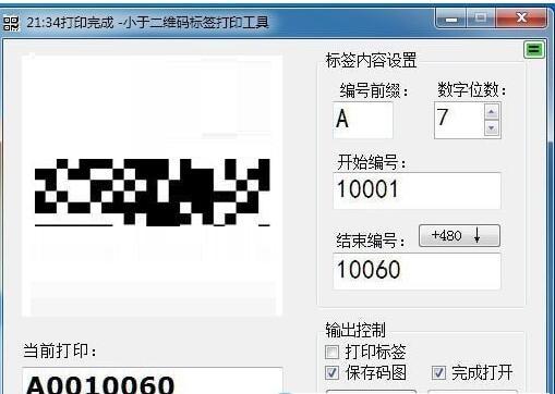 键盘键入标签的前缀、编号范围点击“开始打印”即可瞬间生成二维码标签并自动打印