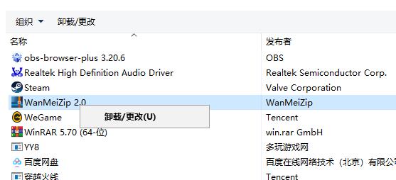 3、在所有程序中找到完美压缩,点击“卸载”,将完美压缩从电脑中卸载了。