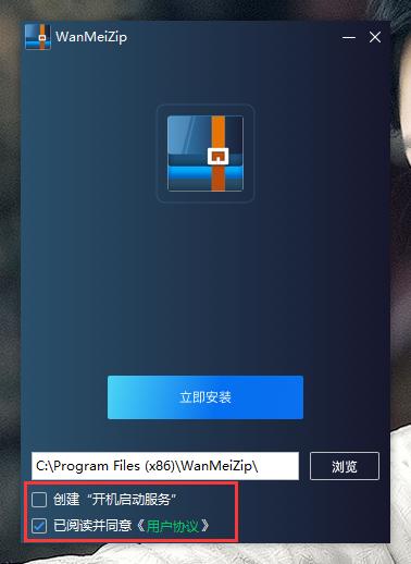 3、软件默认安装位置为“C:/Pgram Files (x86)/WanMeiZip/,小编建议用户点击“浏览”选择C盘以外的磁盘安装,选择好安装位置后点击“立即安装”即可
