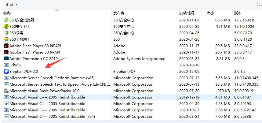 3、在所有程序中找到大象PDF,点击“卸载”,大象PDF就从电脑中卸载了。