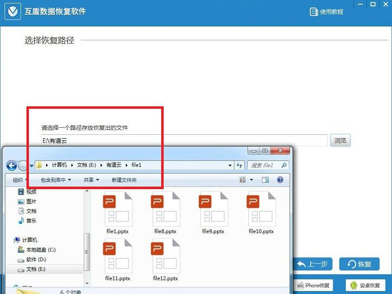 而后选择一个路径存放恢复出的文件,点击恢复按钮,即可将删除的文件恢复好了。