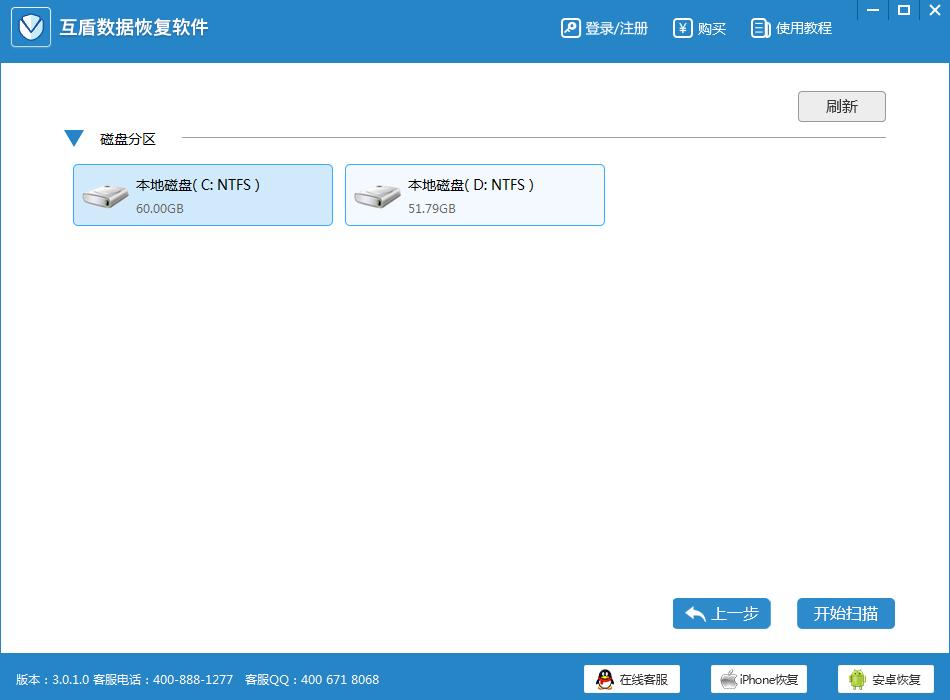 点击界面中的“快速扫描”选项后,之后界面上就显示有读取到的电脑分区了,选择需要恢复的磁盘,点击“开始扫描”按钮。